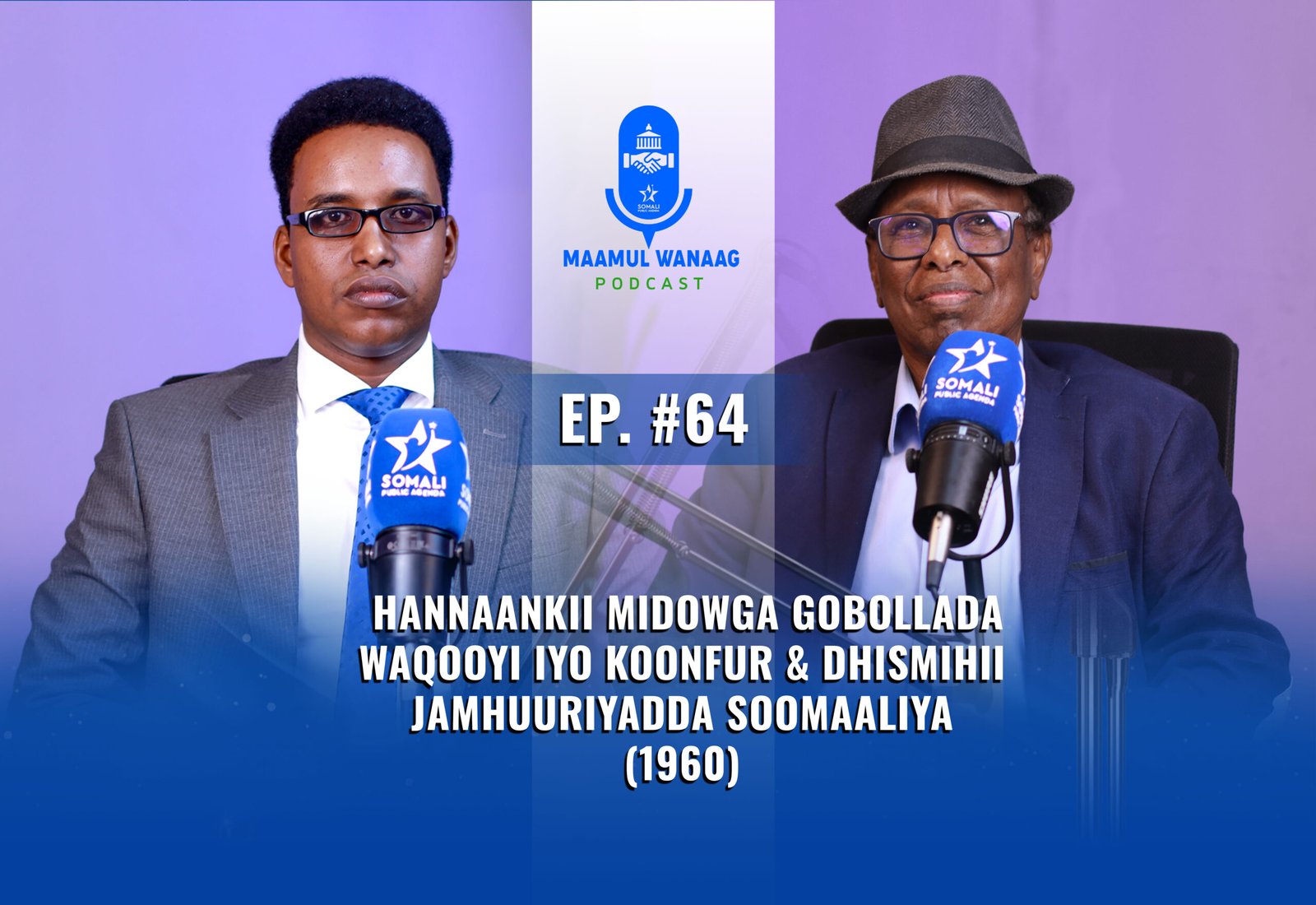 Qeybtan 64-aad ee Maamul Wanaag Podcast, Mahad Waasuge & Abukaate Maxamed Ciise Turunji, oo khabiir ku ah taariikhda & sharciyada buugaagna ka qoray, ayaa isla gorfeynaya hannaankii midowga gobollada Waqooyi iyo Koonfur & dhismihii Jamhuuriyadda Soomaaliya 1960-kii.